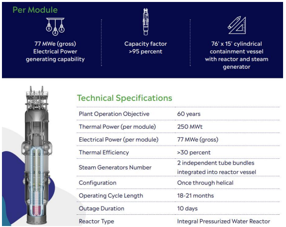 位於田納西州(Tennessee) 的 TVA 是一家聯邦電力公司,於 2025 年 9 月發布其簽署採購 6 GW 新型小型核電廠的消息,該合約計劃將採用 NuScale Power 開發的小型核電模組 (Small Module Reactor, SMR) 組成的核能電廠,目前 NuScale 設計每個 SMR 發電模組的裝置容量 為 77 MW,並由 ENTRA1 Energy 發電業負責興建 6 座約 1 GW 的 SMR 核能電廠,如果一切 順利,計畫第一座 ENTRA1 核能電廠將在上線 2032 商業運營。全球目前沒有商業營運的 SMR 新核能電廠,NuScale SMR 模組TM 的設計剛於 2025 年 5 月獲得美國核子管理委員會 (NRC) 的批准。