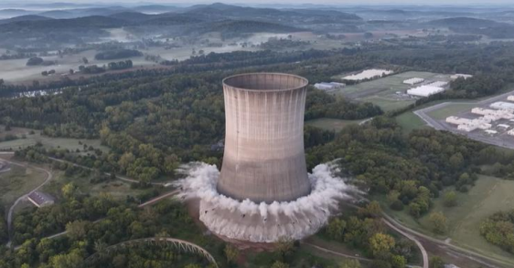 全世界所有的 SMR 核能電廠都是以試驗性的特殊專案建廠,新 SMR 核能電廠設計很不同, 無法使用舊核能電廠房,發展新 SMR 核能,舊核能電廠房必須拆除。下圖是 TVA 在 2025 年 9 月 18 日上午,拆除位於田納西州 Hartsville 的一座 500 英尺高的舊核能電廠冷卻塔。