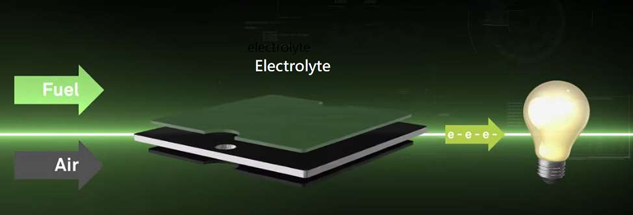 目前燃料電池主要用天然氣(最普遍),在未來可以使用生物氣(biogas)或氫氣為燃料 ,經由電解質 (electrolyte) 的電化學反應將燃料和空氣轉化為電能,且無需燃燒,但根據所使用 的燃料,仍可能產生少量二氧化碳排放。